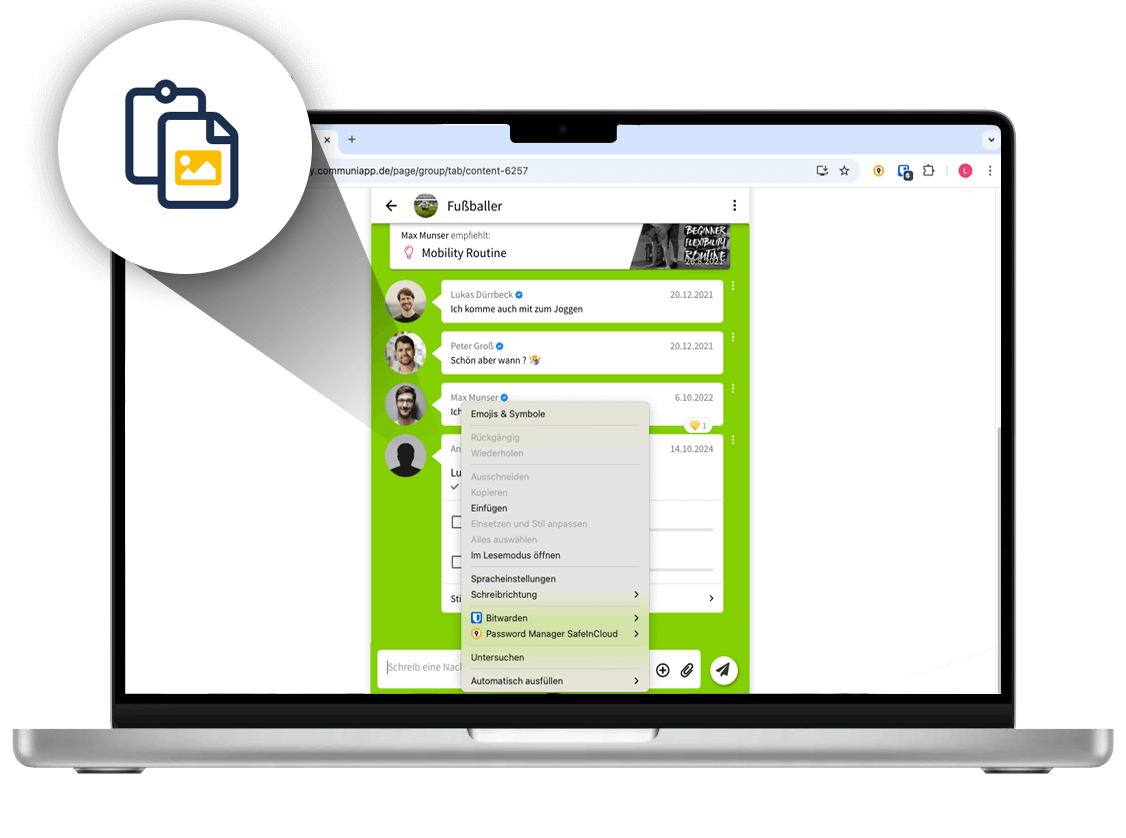 Teile Bilder jetzt noch einfacher im Chat! Kopiere ein Bild und füge es mit Strg + V, Cmd + V oder per Rechtsklick –> Einfügen direkt in der Webversion der App ein.